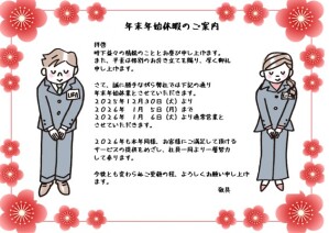 Home › 2025年末年始 2025-12-25 2025年末年始 関連記事 ☆柏市 S様邸 壁付けキッチンから開放感ある対面キッチン 暮らしを変える、水まわりリノベーション☆ ☆柏市 W様邸 壁と床だけでここまで洗練される空間 シンプルなのにホテルライクなトイレ☆ ☆2026年 初春リフォーム大相談会開催!!☆ ☆年末年始休暇のご案内☆ ☆東京都 Y様邸 赤坂 超高級マンション お施主様こだわりのモノトーンインテリアコーディネート☆ ☆年末年始休暇のご案内☆